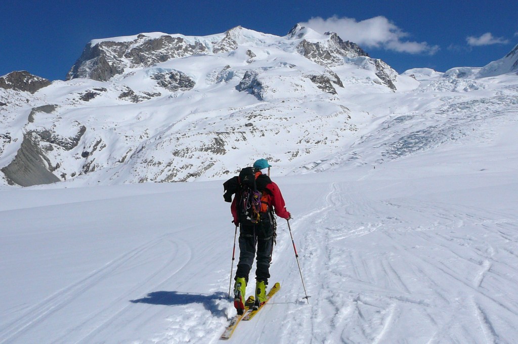Caratteristiche: Ascensione appagante e completa ma molto impegnativa per il dislivello, la quota e il terreno su cui si svolge. Ambiente grandioso e dal panorama estesissimo. Si percorre un ghiacciaio con pendii crepacciati e ripidi, dove l’itinerario non è sempre intuitivo, e una cresta poco ripida ma esposta, a tratti affilata, che presenta pericolose cornici sul versante ossolano e comporta una breve arrampicata finale. Problemi di orientamento in caso di scarsa visibilità.