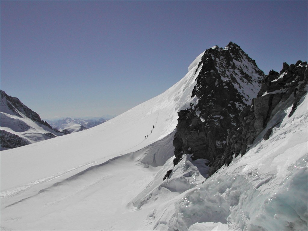 Caratteristiche: Percorso misto con un avvicinamento su ghiacciaio relativamente poco crepacciato. Poi una cresta di misto esposta e abbastanza lunga con qualche passaggio su roccia non banale. Gita con scarsi pericoli oggettivi ma complessivamente impegnativa, al cospetto dei ghiacciai più vasti delle Alpi, tra cime glaciali slanciate e scoscese. Esteso panorama su tutte le vette dell’Oberland, in particolare su Schreckhorn e Lauteraarhorn, Gross Grünhorn e Aletschhorn.