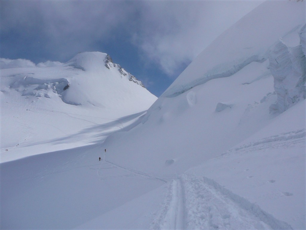 Approfittando delle ottime condizioni di innevamento in alta montagna propongo agli amici una scialpinistica in quota per chiudere la stagione. L’obiettivo è la prestigiosa Punta Gnifetti, nel cuore del massiccio del Rosa, dove nessuno di noi, novizi di questa splendida disciplina, è mai stato. Le previsioni sono incerte: un fronte freddo raggiungerà la Svizzera centrale e non è ben chiaro fin dove spingerà i suoi effetti. Decidiamo di tentare la sorte. Con me c’è Federica, la mia fidanzata, sedotta dallo scialpinismo di cui è innamorata forse più di me. Ci sono anche Paolo e il comune amico Elio, un matematico eccentrico e simpatico che da qualche anno ha messo anche lui le pelli sotto gli sci.